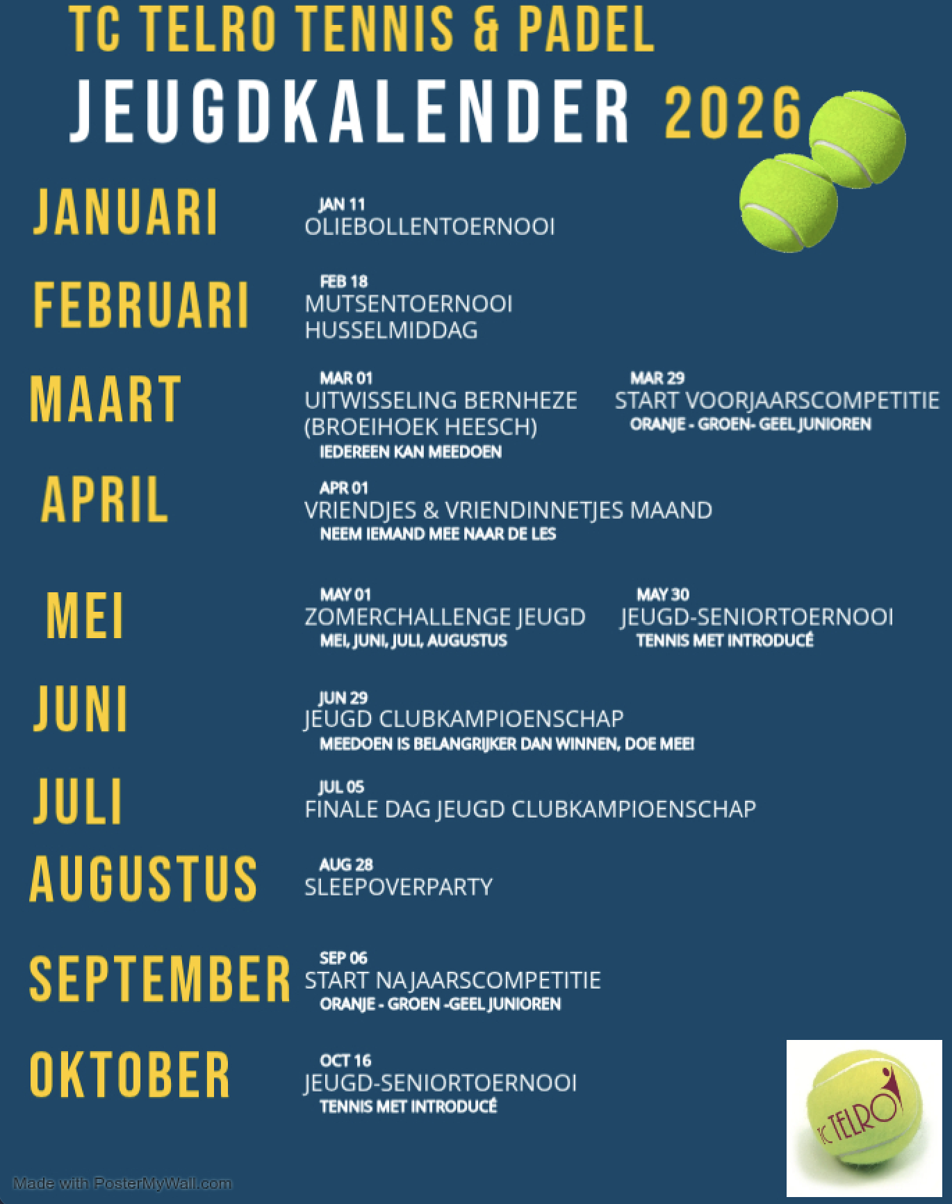 Wil jij naast tennis of padel ook meedoen aan leuke activiteiten? Dat vinden wij superleuk. Wij, de jeugdcommissie, organiseren het hele jaar door allemaal gezellige en soms lekkere gekke activiteiten voor onze jeugdleden.