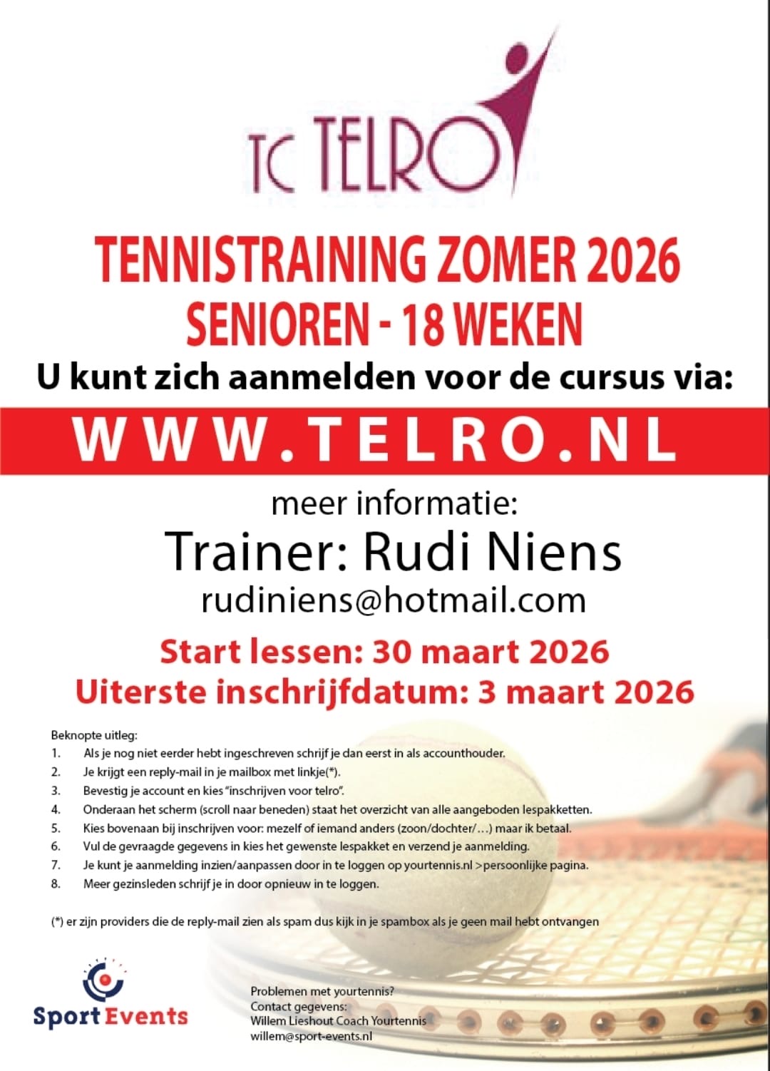 Meer informatie kun je vinden op de site van TC Telro bij tabblad Senioren - Training Senioren.